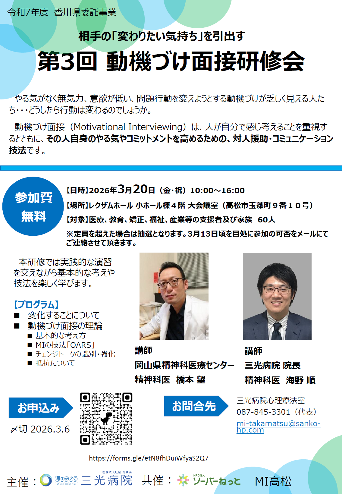 - 【3/20】第3回 動機づけ面接研修会の開催について