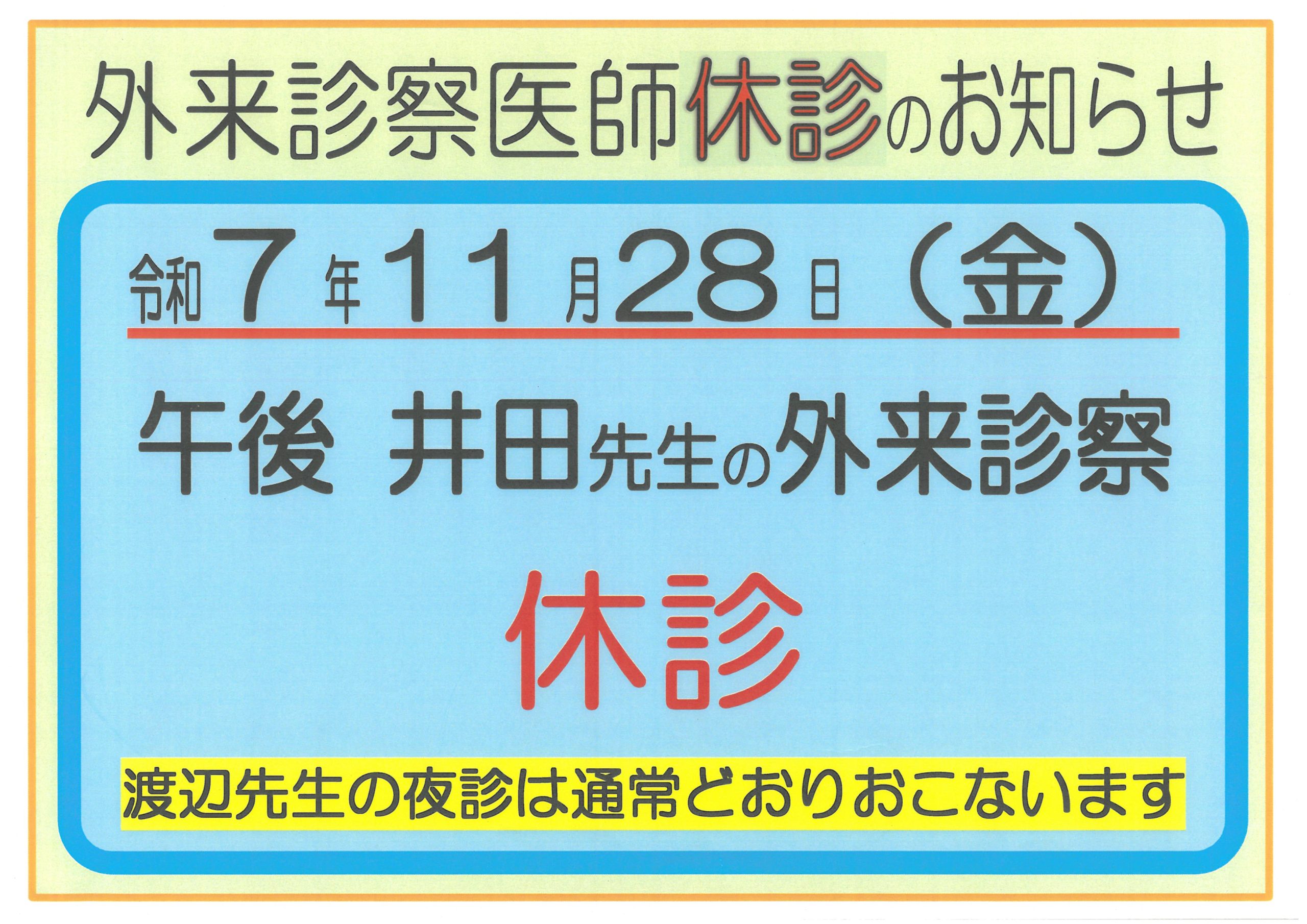 令和7年11月28日(金)外来担当医休診のお知らせ